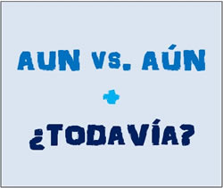 include("ad3rd.php"); ?>Aun also appears in two forms, therefore a lot of confusion arises that which one would be more suitable in a given situation. The two forms are aun and aún. Aún is accented and aun is unaccented. Aún is used as an adverb just like todavía. However, aun is generally used as a conjunction.