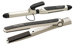 Curling iron is a type of hair iron that can create waves and curls in hair using different methods and products in the hair. Curling irons are in cylindrical shape and have a metallic barrel, with a plastic handle. Some curling irons may also come with a clip to hold hair in place. The purpose of a curling iron is to provide curls or waves to naturally straight hair. The plastic handle commonly comes with only one button, but could have more buttons if the device has extra features. There are many different types of curling irons, which vary by diameter, material, and shape of barrel and the type of handle. The barrel can range between 0.5 inches (1.3 cm) to 2 inches (5.1 cm). The smaller barrels are used for curls and ringlets, while the bigger barrels are used to create waves.