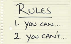 Rules are guidelines that are provided to maintain smooth functioning of an organization and to maintain peace and harmony among its people. In terms of definition, rules are quite similar to laws. However, they differ from laws because they are not as rigid as a law. Once a law is enacted it must be followed by all citizens but rules are often changed and altered depending on the place, organization and people. Rules are a less formal set of guidelines which has little or no consequences depending on the person that is enforcing them. Rules are also enforced by the person that is making the rule. For example, rules created in a household are enforced by the parent that created the rules. Similarly, rules established in a classroom are enforced by the teacher or the school administration. Rules enacted inside the household differ from the rules enacted inside the classroom. This is because rules are more detailed guidelines and must be changed depending on the situation. Many people often believe that rules that are established in the childhood helps a person to understand laws that are created by the government and also makes him follow the laws strictly. Rules also have smaller consequences and punishment such as no TV time, or no allowance, taking away of cellphones, etc.