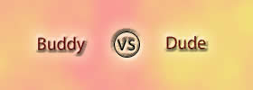 Buddy is an informal way to mainly refer to a male friend. Dude is a slang term in American English for an individual. |
