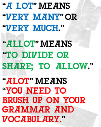 Reference: Oxford Dictionaries (Alot, Allot and A Lot), Dictionary.com, Grammar Monster Image Courtesy: tumblr.com, writingexplained.org