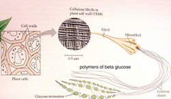 Cellulose is used for dietary reasons in humans and more commonly in industrial uses. In humans, cellulose provides fiber for the body, though human cannot completely break down cellulose. It helps in digestion and acts as a bulking agent in feces. It is an important part of a human’s diet. Industrially, cellulose today is mainly obtained from wood pulp and cotton. It can also be derived from by harvesting plant fibers like cotton, flax, hemp, and jute and processing into cloths. Cellulose is used to produce paperboard and paper card stock and of textiles made from cotton, linen, and other plant fibers. It can also be converted into cellophane and rayon for use in textile industry. It also plays an important part in producing alternate, environmental-friendly fuel.