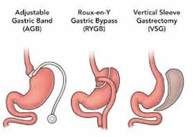 There are many different types of bariatric surgery techniques like sleeve gastrostomy, adjustable gastric band and Roux-en-Y gastric bypass. In adjustable gastric band, a band is placed around the top of the stomach. This way the stomach’s capacity for retaining food gets reduced. In Roux-en-Y bypass the top of the stomach is stapled, making a small pouch. The digestive track is rerouted and the connection from the small pouch as the new stomach is made to the middle part of the small intestine. In sleeve gastrostomy, the size of the stomach is reshaped into a long tube, which reduces the size of stomach, and therefore affects the capacity of stomach for retaining food.