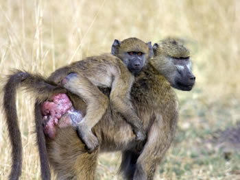 Baboons are ground dwelling and are found in open savannah, open woodland and hills across Africa. They have an omnivorous diet, but much of their diet is filled with vegetables and fruits. They occasionally prey on insects, fish, shellfish, hares, birds, vervet monkeys, and small antelopes. In some areas, they have also been known to prey on sheep and goats from human settlements. They have a life expectancy of 30 years, which can extend to 45 years in captivity.