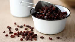 Currants, Zante currants or Corinthian currants are dried berries of small, sweet, seedless black grapes known as the Black Corinth. The name is derived from the Anglo-French phrase ‘raisins de Corinthe’, meaning “Grapes of Corinth.” The name Zante Currants comes from the Ionian island of Zakynthos (Zante), which was once the greatest producer and exporter of grapes and raisins. In addition to black currants, there are also red and white currants which are produced from different grapes. The currant is considered as the oldest raisin and was first recorded by Pliny the Elder in 75 AD.
