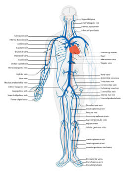 Veins, part of the circulatory system, are blood vessels that are responsible for carrying deoxygenated blood to the heart. The purpose of most veins is to take deoxygenated blood from tissues in various parts of the body and bring it back to the heart. Exceptions to this are pulmonary veins and the umbilical veins. The pulmonary veins carry the oxygenated blood from the lungs to the heart.