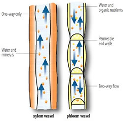 Transportation of food and nutrients from leaves to storage organs and growing parts of plant. Forms vascular bundles with xylem. |
