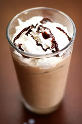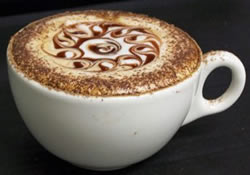 Café mocha is a form of caffè latte. It is prepared by typically adding one third espresso to two thirds steamed milk, with a chocolate portion. Typically, this coffee is in the form of chocolate syrup, although other vending systems use instant chocolate powder. Mochas may contain dark or milk chocolate. The coffee type is known with different coffee names in different regions. One of the mocha types is "Cafe borgia" with orange rind or with an addition of orange flavors. This is often served with whipped cream and topped cinnamon.