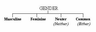 Neuter- It is used to name a member of a species which does not fall in wither of the categories of male or female. Usually, it represents lifeless objects like tree, chair, table , sunglass, school , etc.