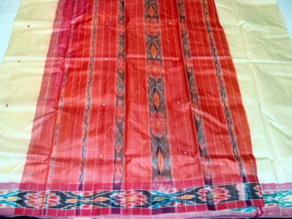 Ikat Sarees – These sarees from Orissa makes use of a tie and dye technique on the yarn, and then motifs are weaved in them. Their borders are generally embroidered with heavy thread work wonders whereas pallus exhibit geometric ikat patterning. Silk and gold threads are used for creating motifs. These sarees are also known as patan patola.