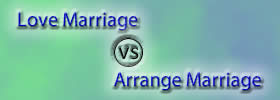 Love marriage is a union of two people who love each other prior to the wedding. Arrange marriage is when families of the couple choose the suitable partners. |